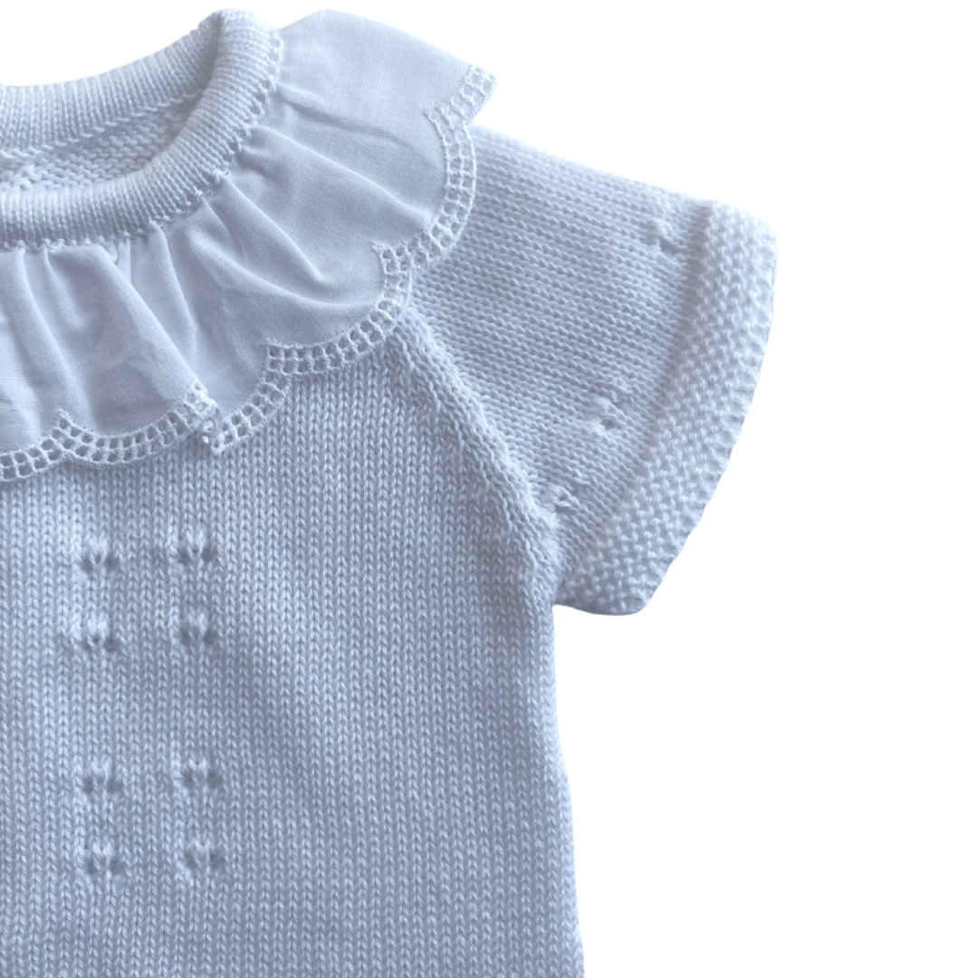 Ranita bebé manga corta tejido de algodón con cuello de puntilla